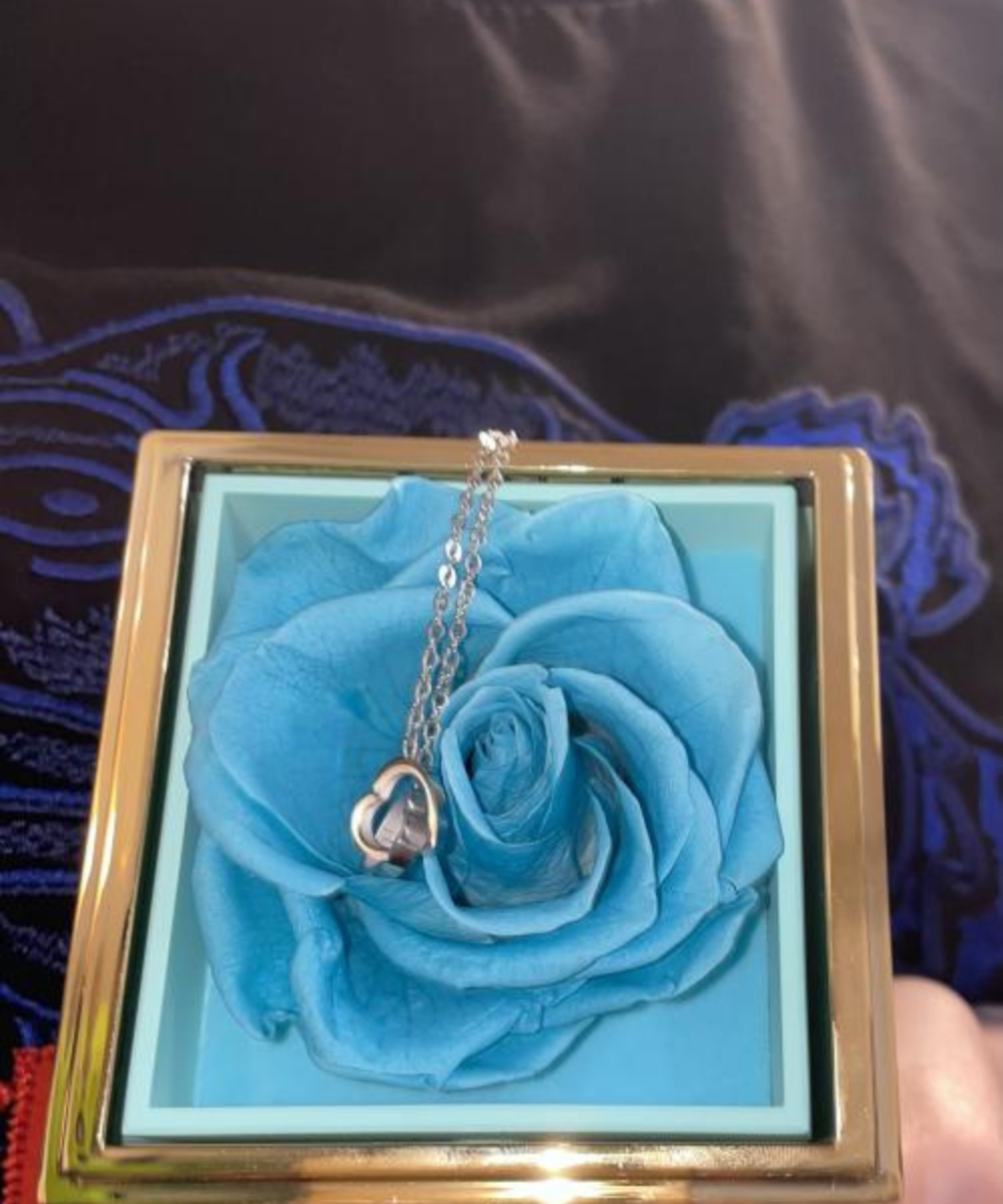 This keepsake is inspired by love that lasts, captured in a preserved rose and a hidden necklace made to hold meaning close. Gently revealed from within, the softly shining piece reflects warmth and care, resting in a moment of surprise and connection. Paired with a rose that stays beautiful over time, it preserves a feeling meant to be remembered, worn, and cherished long after it’s unwrapped.
